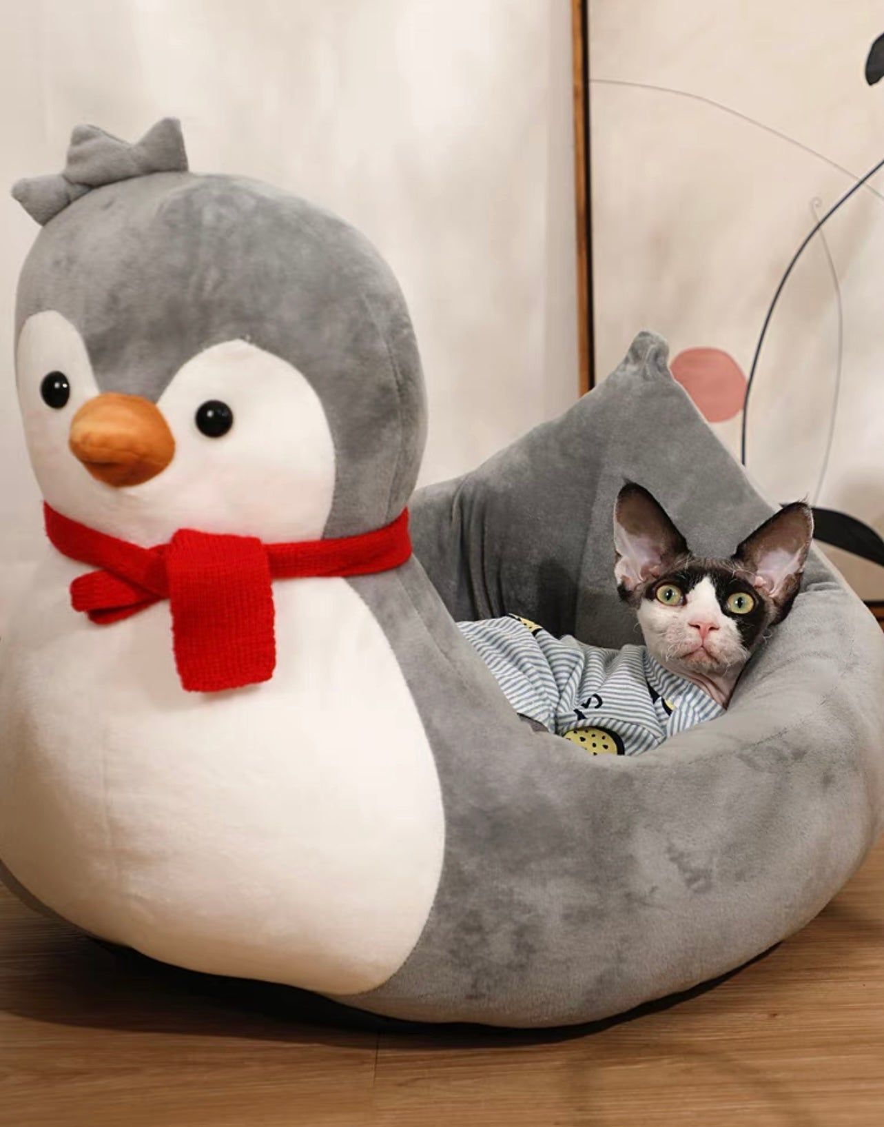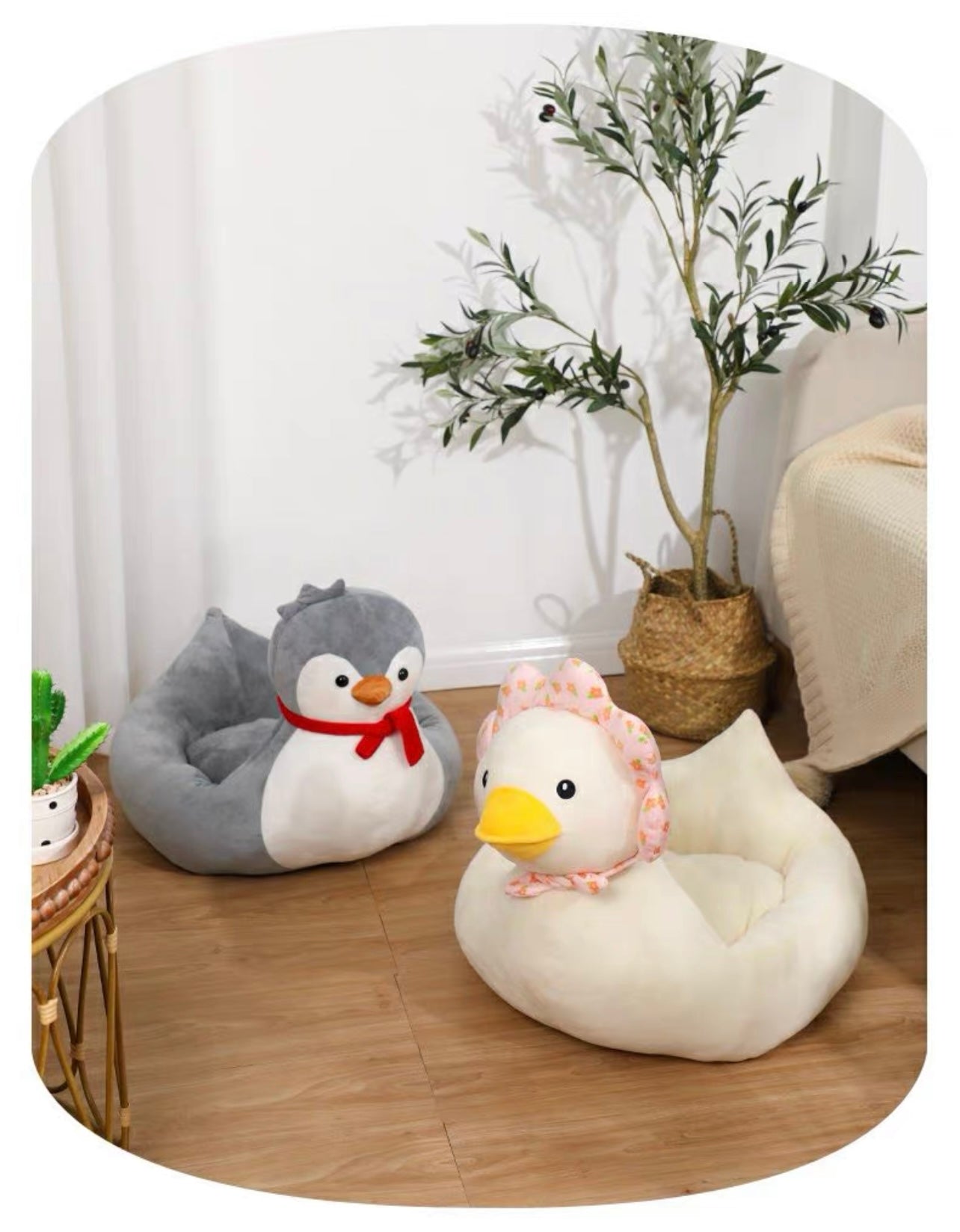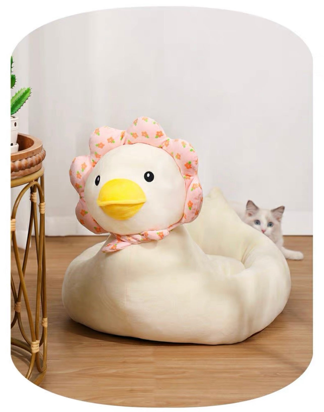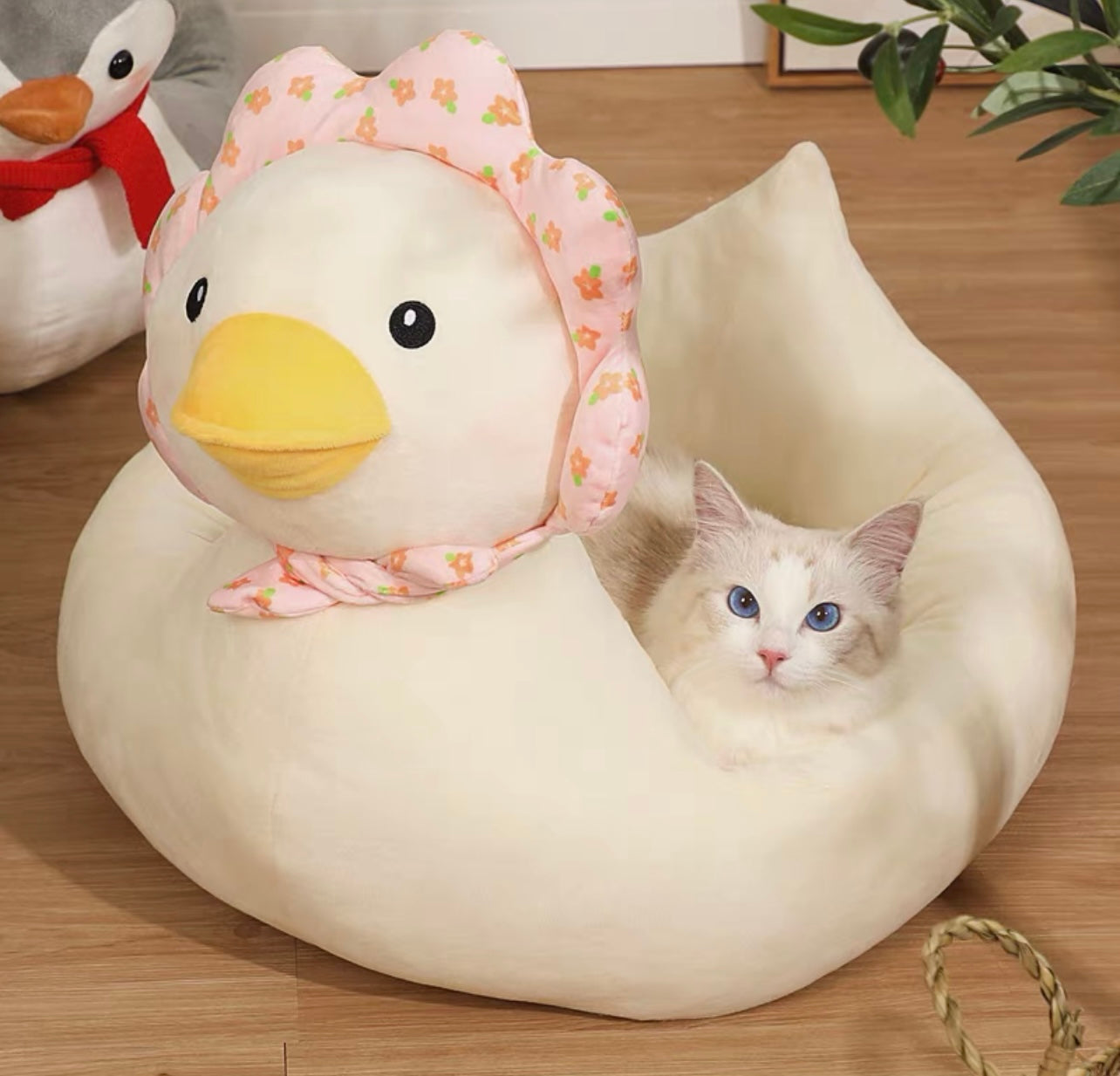 Our duck-shaped cat bed is a unique and playful pet accessory designed to provide your feline friend with a cozy and comfortable place to rest. The bed is shaped like a duck, with a soft and plush exterior that resembles the texture of feathers. The bed features a spacious interior that is lined with soft and comfortable padding, providing a warm and inviting space for your cat to snuggle up in.