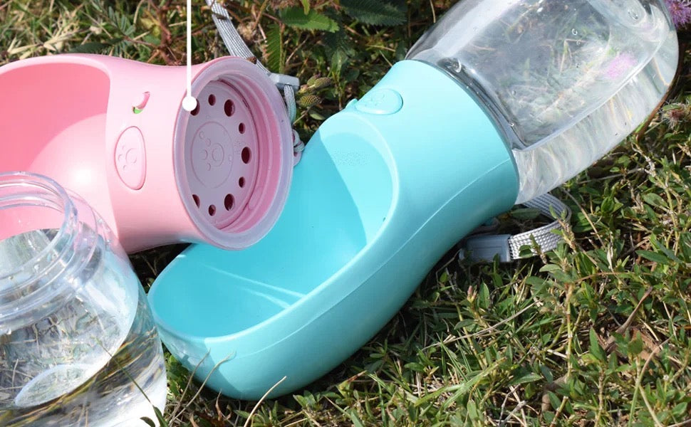 Our water bottle is designed to be easily used with just one hand. Use one thumb to dispense the water with one button, feed your dog, retract the remaining water and lock the bottle. All this whilst letting you keep a hold of your dog's leash with your other hand
